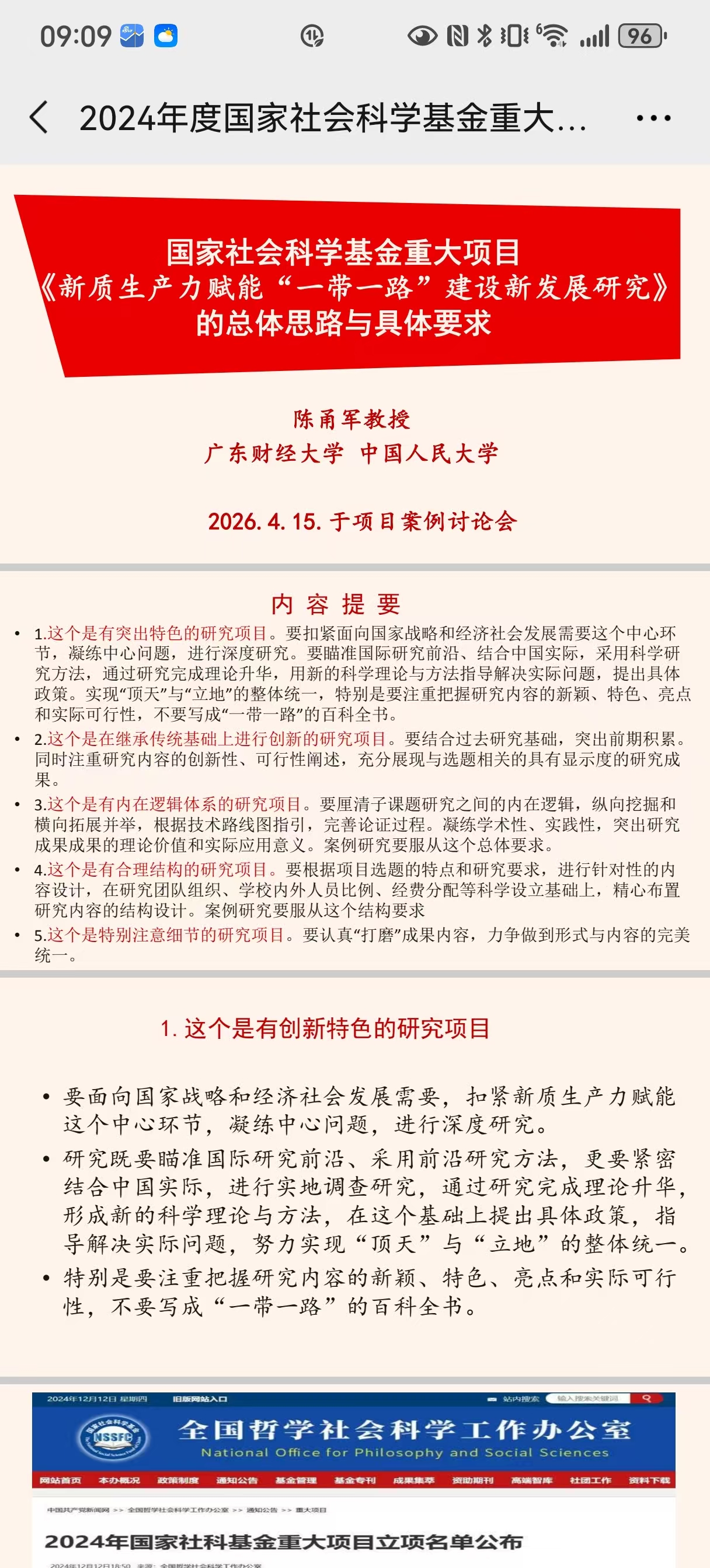 2026年4月15日,国家社科基金重大项目课题组举行线上会议,研讨重大项目案例的研究工作。首席专家陈甬军教授就当前项目研究的进展、进一步研究要把握的方向以及案例研究分析的若干原则作重点发言。与会课题组成员进行充分讨论。大家认为,根据“十五五”规划对高质量共建“一带一路”的规划和近期国际形势的新变化,新质生产力赋能“一带一路”建设既是形势所需,也是发展所求。要抓住有利时机,认真开展案例研究,促进整体精益求精,争取高质量完成项目研究任务。