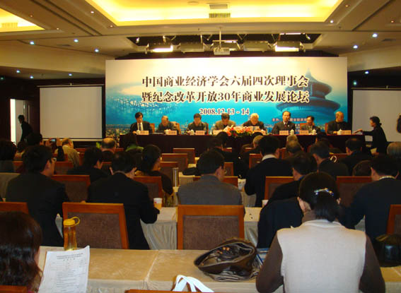 2008年12月13日, 由中国商业经济学会主办的“中国商业经济学会第六届四次理事会暨纪念改革开放三十年商业发展论坛”在北京紫玉饭店召开。来自国家商务部等部委的领导和中国人民大学等高校专家学者以及全国主要省市商业经济学会的代表150 余人参加了此次高层论坛。论坛全面回顾了改革开放30年来中国商业发展的历程、取得的成就和经验以及存在的问题,并对未来中国商业的发展提出了一系列思路和建议。我校流通经济研究所首席研究员徐印州教授、所长王先庆教授应邀出席了此次论坛。