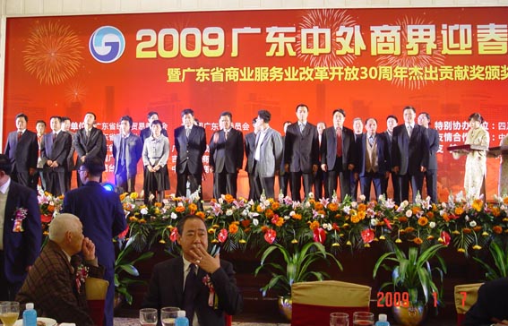 2009年1月7日,由广东省商业联合会主办的“2009广东中外商界迎春大会”在广州东方宾馆隆重召开。大会为广东省商业服务业改革开放30年做出杰出贡献的单位、个人和组织举行了颁奖仪式。来自广东省政府有关部门、全省中外商界领袖、企业精英、外国驻穗外交官员及广东省各地市经贸局负责人和获奖代表等共1300多人到会。广东省人大常委会副主任游宁丰、副省长佟星出席了会议。