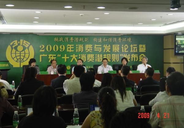 2009年4月21日,由广东省消费者委员会、羊城晚报和南方电视台共同主办的2009年消费与发展论坛暨广东“十大消费潜规则”发布会在广州市省工商局举行。