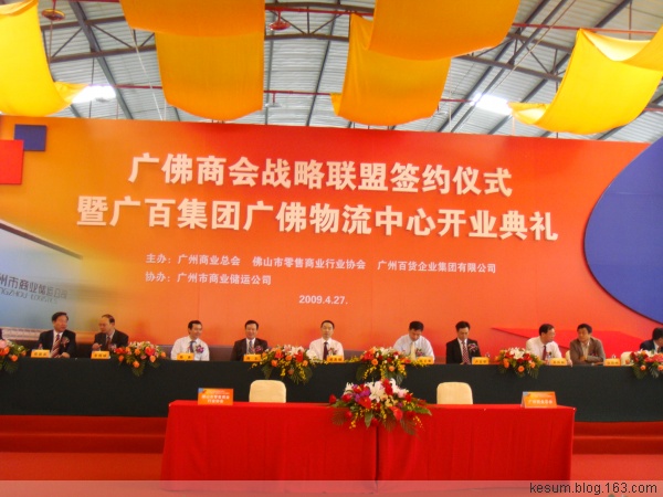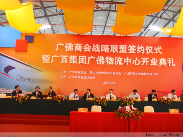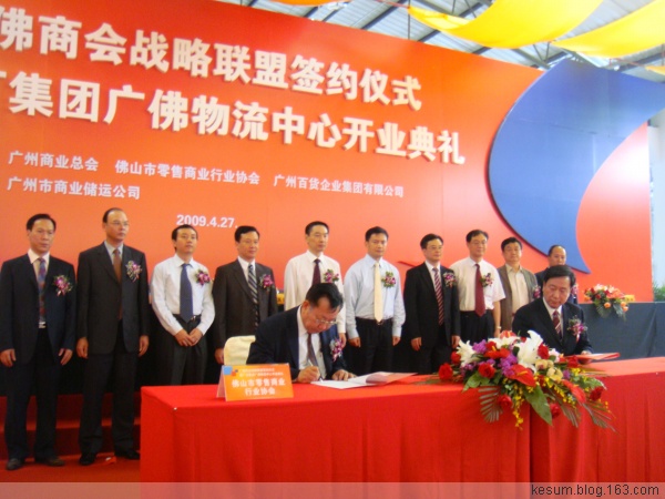 在会上,广州商业总会与佛山市零售商业行业协会正式签订了《广州商业总会与佛山零售商业行业协会战略联盟协议书》。同时,广百集团落子广佛经济发展新轴带―――南海里水的广百集团广佛物流中心首期宣布开业并投入使用。