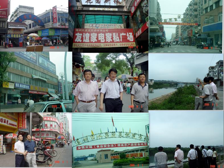 6月1日,王先庆、徐印州等课题组成员一行6人来到连州市进行实地调研,当天重点走访了花园新城、慧光路、东门路、人民路等主要商业街及大型零售商店、批发市场,了解了其分布、规模、交通、交易等情况。6月2日上午,课题组分成两组分别进行调研工作。一组前往连州市西岸、保安、大路边、星子、龙坪镇等进行实地调研;另一调研小组在连州市区对主要商业街进行深入的调研统计工作。6月3日,专家组在经贸局黄道伟副局长的陪同下,对东陂镇和九陂镇的商业网点现状进行了调研。