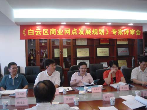 2009年10月22日上午9点,《白云区商业网点发展规划》(以下简称《规划》)专家评审会在白云区政府715会议室召开。参加评审会的专家组成员有:广东商学院流通经济研究所首席研究员徐印州教授、流通经济研究所所长王先庆教授、中山大学城市与区域研究中心魏清泉教授、广州市经济贸易委员会规划建设处调研员何识恩、广州市城市规划勘测设计研究院规划总工程师彭涛。白云区政府办副主任温振洋,区经贸局局长段栓柱、副局长肖伟然,区发改局、区交通局、区国土局、区规划分局等区有关职能部门的代表出席了会议。