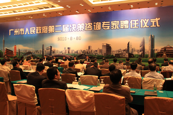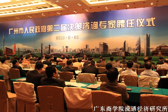 2010年3月30日,广州市人民政府第二届决策咨询专家聘任仪式在东方宾馆举行,市长张广宁向出席仪式的专家颁发聘书并作重要讲话。市领导邬毅敏、徐志彪、陈明德、甘新及各市直部门负责人等参加了活动。广东商学院流通经济研究所所长王先庆教授、首席研究员徐印州教授、法学院院长邓世豹教授等省内外100余名专家被聘任为第二届决策咨询专家。