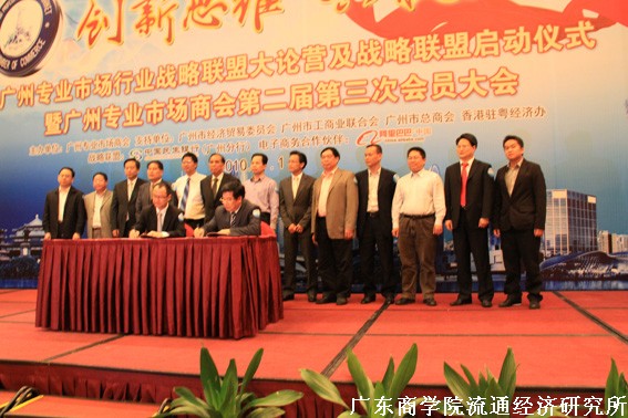 2010年4月1日,由广州专业市场商会主办的“创新思维,共赢天下――广州专业市场行业战略联盟大论营及2010年第二届第三次会员大会”在香格里拉大酒店隆重举行。市政府甘新副市长、市经贸委赵小穗主任、海印集团董事长邵建明、广百集团董事长荀振英等领导出席了大会。 广东商学院流通经济研究所所长王先庆教授应邀作“广州专业市场升级转型的战略定位及资源整合”主题报告。到会的还有广州110家亿元规模以上专业市场老板、中小企业主、专家学者、相关行业代表、政府领导等500余人参加了本次大会。
