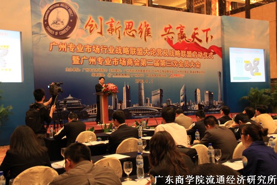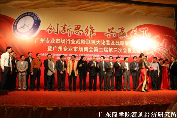 4月1日,广州专业市场商会主办的“创新思维•共赢天下―广州专业市场行业战略联盟大论营暨2010年第二届第三次会员大会”在广州香格里拉大酒店隆重举行,广州110家规模亿元以上专业市场的管理方、中小企业主、专家学者、相关行业代表和政府领导等共500余人参加本次盛会。广东商学院流通经济研究所首席研究员徐印州教授、所长王先庆教授应邀出席了大会,王先庆在大会上作了“广州专业市场升级转型的战略定位及资源整合”主题报告。