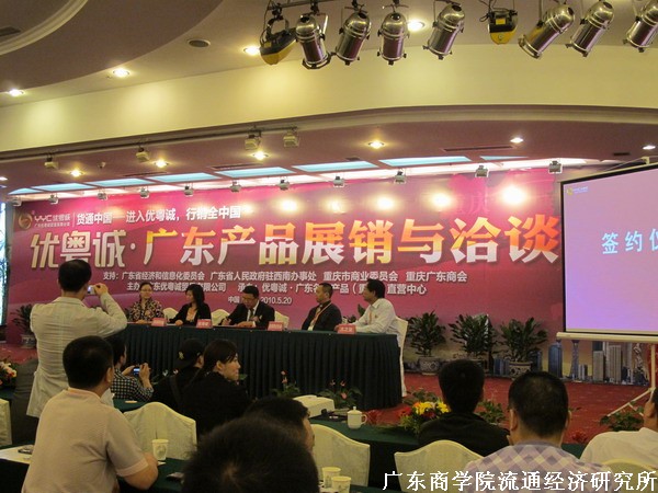 5月20日,由广东优粤诚贸易有限公司、优粤诚・广东名优产品(重庆)直营中心联合主办的"渝恰会暨优粤诚广东名优产品展销洽谈会"在重庆市渝中区菜园坝举行。广东商学院流通经济研究所所长王先庆教授应邀参加了此次洽谈会并致辞。