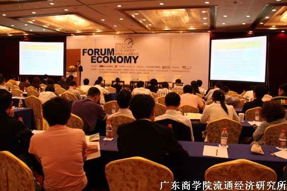 6月18日,由《每日经济新闻》和广州新闻台《经济珠三角》栏目共同主办的“珠三角‘速度经济’暨粤商企业发展论坛”在广州开幕,近200余家粤商精英出席了论坛。   广东商学院流通经济研究所所长王先庆教授应邀出席论坛并作“广东经济大转型与粤商发展新思维”专题发言。