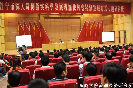 11月9日,普宁市为贯彻省办公厅有关文件精神,大力推进管理干部改革创新,推动加快转变经济发展方式,揭阳普宁市举行了“深入贯彻落实科学发展观,加快转变经济发展方式专题研讨班”。 广东商学院流通经济研究所所长王先庆教授应邀为研讨班作“区域型商贸中心的形成与‘商贸名城’的打造”专题报告。