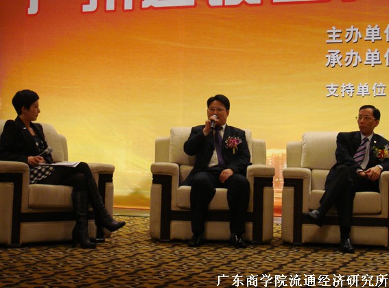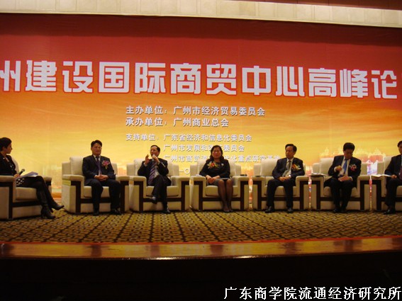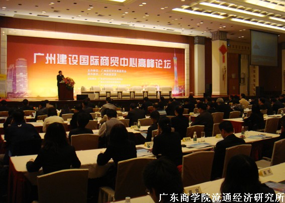 12月13日,由广州市经贸委主办、广州商业总会承办、广州市商贸流通现代化重点研究基地等协办的“广州建设现代化国际商贸中心之的战略与路径”商贸高峰论坛在东方宾馆举行。国家商务部副部长姜增伟为论坛发来了贺信,国家商务部政策研究室主任李荣灿、广东省经信委党组副书记戚真理巡视员、广州市副市长甘新分别在会上致辞,广东商学院流通经济研究所所长、广州市商贸流通现代化重点研究基地主任王先庆教授、广东省人民政府发展研究中心副主任李惠武、广州商业总会会长荀振英、广州市经济贸易委员会党委书记、主任赵小穗、暨南大学现代流通研究中心执行主任陈海权等与来自国务院发展研究中心、国家发改委和新加坡、香港以及本省的专家学者到会发表演讲和开展对话。