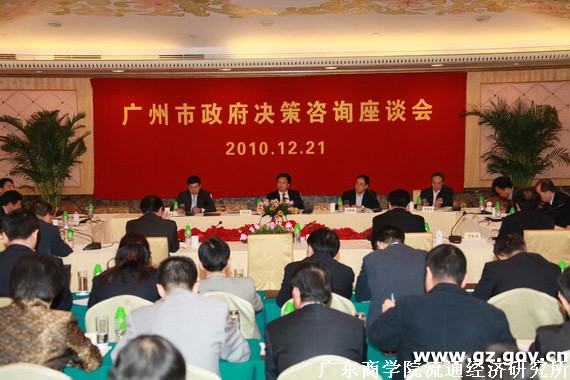 为起草好明年《政府工作报告》,谋划好广州“十二五”规划开局,21日下午,广州市政府召开决策咨询专家座谈会,省委常委、广州市委书记张广宁主持会议,面对面专门听取专家学者的意见和建议。广东商学院流通经济研究所所长王先庆、谢鹏飞、陈勇、李元元、李明华、李新家、陈栋、董小麟、李江涛、向晓梅、周春山、李从东、谢俊贵等13位专家与会。广州市市长万庆良表示,广州要在世界城市的坐标下找准定位,紧紧抓住转变发展方式这条主线,走一条符合科学发展观要求的新路。市领导邬毅敏、市政府秘书长谢晓丹,各市直部门负责人等参加了座谈会。