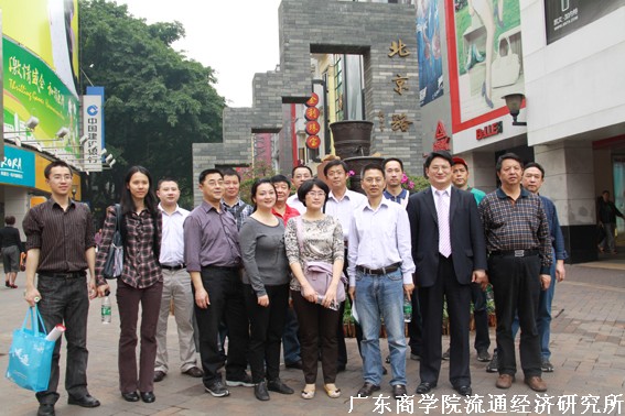 广州和北京、重庆、天津、上海同为国家五大中心城市,除天津外,其余四个城市都声称要打造成国际商贸中心。那么,各大中心城市在建设国际商贸中心的道路上有哪些特色和差异?各自有哪些重点区域和项目?有哪些成功的经验与教训?这就需要深入的调研、考察和交流。2011年4月7日-8日,由广东商学院流通经济研究所、重庆市江北区商委共同主办,广州市商贸流通现代化重点研究基地、广百集团共同承办的“广州与重庆商贸流通业发展比较研讨会”在广州召开,两地30多名专家学者、政府部门领导、企业界和行业协会参与了会议。会议期间,与会者还对广州的餐饮业、零售业以及番禺新城商圈、天河路商圈、北京路商圈等进行了考察。