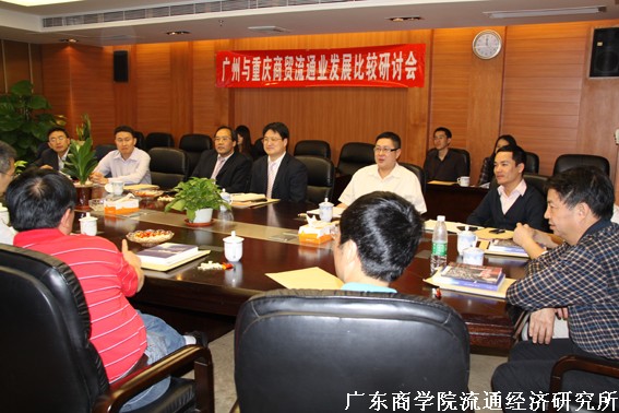 广州和北京、重庆、天津、上海同为国家五大中心城市,除天津外,其余四个城市都声称要打造成国际商贸中心。那么,各大中心城市在建设国际商贸中心的道路上有哪些特色和差异?各自有哪些重点区域和项目?有哪些成功的经验与教训?这就需要深入的调研、考察和交流。2011年4月7日-8日,由广东商学院流通经济研究所、重庆市江北区商委共同主办,广州市商贸流通现代化重点研究基地、广百集团共同承办的“广州与重庆商贸流通业发展比较研讨会”在广州召开,两地30多名专家学者、政府部门领导、企业界和行业协会参与了会议。会议期间,与会者还对广州的餐饮业、零售业以及番禺新城商圈、天河路商圈、北京路商圈等进行了考察。