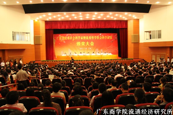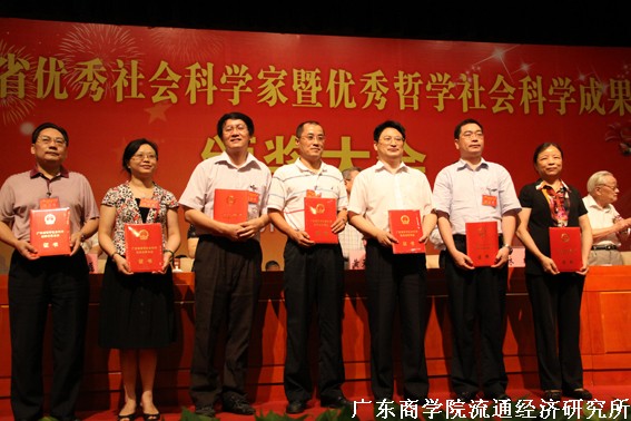 7月18日上午,“广东省优秀社会科学家暨哲学社会科学优秀成果颁奖大会”在广州珠江宾馆会议中心隆重召开,中共中央政治局委员、省委书记汪洋,省委常委、常务副省长朱小丹,省委常委、宣传部长林雄,省人大副主任王宁生,省政协副主席陈蔚文出席颁奖大会并为获得首届“广东省优秀社会科学家”荣誉称号的16位专家学者授牌。授牌仪式结束后,大会举行了省哲学社会科学优秀成果颁奖仪式,对2008-2009年度省哲学社会科学优秀成果奖进行表彰。