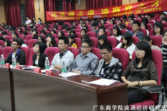 11月12日晚,流通经济学会七周年庆典暨流通大讲堂系列之“论流通之道,造商界人才”讲座在三水校区学术报告厅举行。本次讲座由广商流通经济研究所、社联流通经济学社联合承办。广商流通经济研究所所长、广东省商业经济学会秘书长王先庆担任主讲。