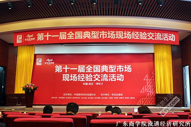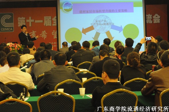 3月27日至29日,中国建筑材料流通协会在武汉召开"第十一届全国典型市场现场经验交流"会议,广东商学院流通经济研究所所长王先庆教授应邀出席并作“流通渠道变革与建材家居市场转型升级”主题报告。中国建筑材料流通协会会长孟国强、副会长张彩虹、欧亚达集团副总裁丁道汉及红星美凯龙、重庆建玛特等全国各地近100余家建材家居市场高管或开发商参会,就2013年建材家居流通行业面临的机遇、建材家居企业如何打造自身优势等问题进行探讨。