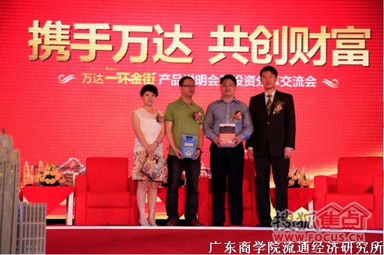 4月20日,由东城万达广场举办的“携手万达,共创财富“万达一环金街产品说明会暨投资分享交流会在东莞东城万达广场营销中心盛大开幕。广东商学院流通经济研究所所长、广州市政府决策咨询专家王先庆教授应邀出席论坛交流会,广州白云万达广场招商运营负责人高一帆、万达合作品牌商家代表――九毛九餐饮有限公司拓展总监胡中华及万达领导、媒体和数百名新老业主莅临现场,济济一堂,气氛火热爆棚。本次交流会的主题是:新型城镇化背景下的东莞城市升级与万达商圈发展的新机遇。与众多投资者共同分享投资万达商铺成功心得,讲解万达商业运营的精髓所在!