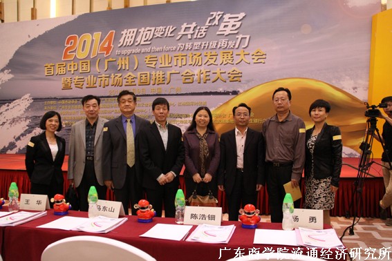 2014年5月9日下午,由中国市场学会、广东财经大学、广东现代专业市场研究院主办,广州专业市场商会、广东海印集团等承办的“2014首届中国(广州)专业市场发展年会”在广州朗豪酒店举行。广东财经大学校长王华、副校长于海峰、科研处等领导及老师出席了年会。广东财经大学校长王华在会上致辞,流通经济研究所所长王先庆发表主题演讲并主持沙龙。