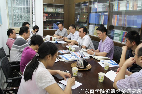 2014年5月21日,省科技厅科技服务与管理处卢金贵处长、袁光侠副处长一行六人来流通经济研究所调研考察,就《2014年技术贸易体系与科技服务网络建设科技专题计划申报指南》征求意见,并同王先庆所长发表的“化解阻碍生产性服务业发展四大难题”(2014年5月19日《南方日报》A2版)一文进行了交流探讨。我校于海峰副校长、科研处傅道忠处长、陈红丽副处长及流通所研究人员与会。于海峰副校长表示,会后将组织召开一次相关专家座谈会作进一步探讨。