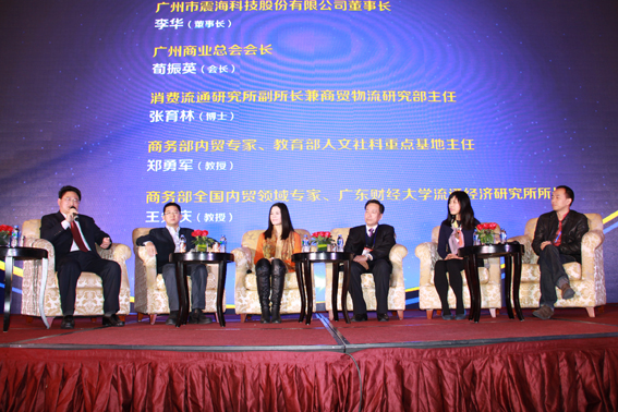广州市震海科技股份有限公司执行董事李华、广州商业总会会长荀振英致辞,国家商务部研究院流通战略部主任张育林、浙江工商大学MBA学院院长郑勇军、广东财经大学流通经济研究所所长王先庆分别作主题演讲。王先庆教授还主持了论坛环节的嘉宾对话。