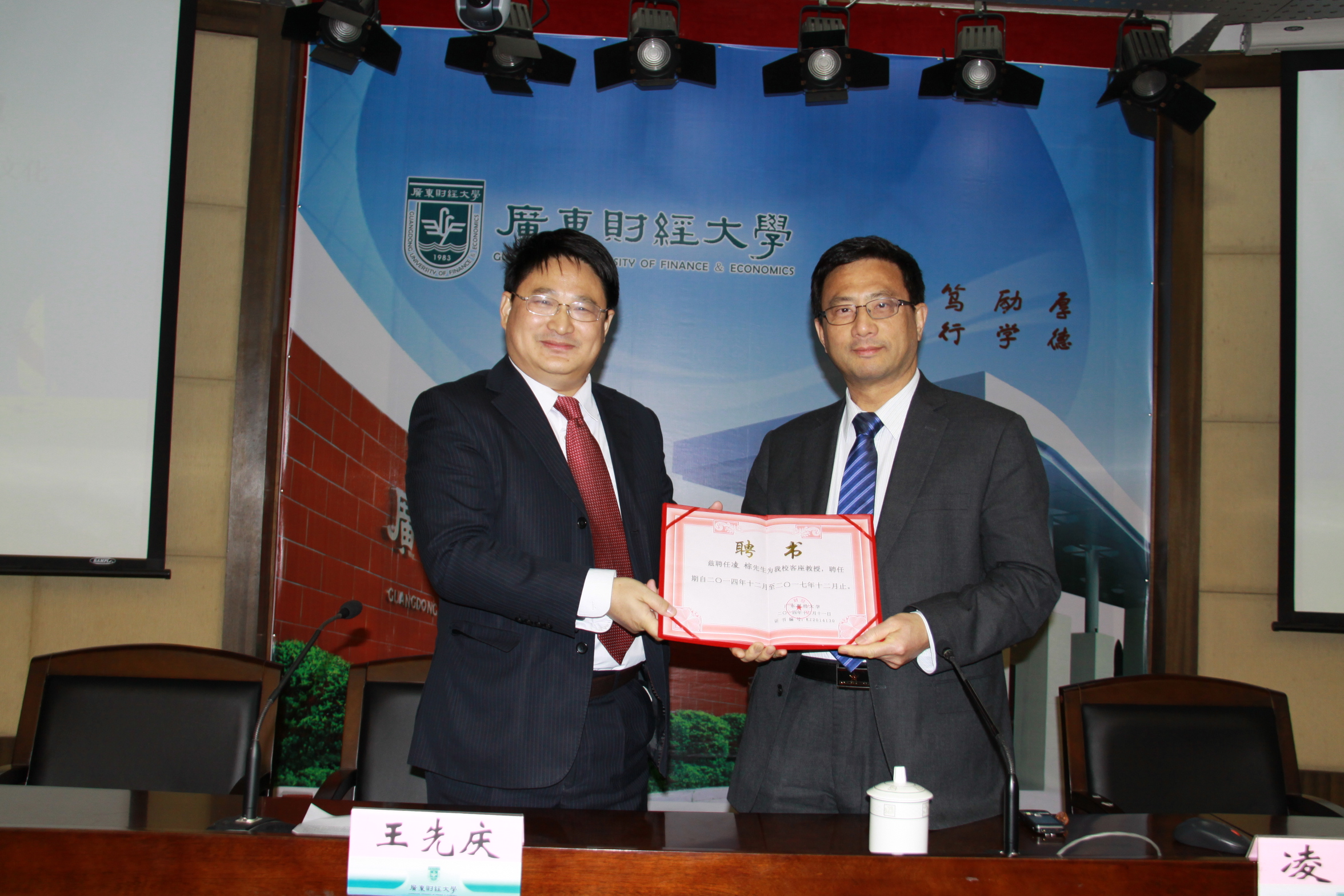 流通经济研究所所长王先庆为华人科学家凌棕颁发我校客座教授聘书