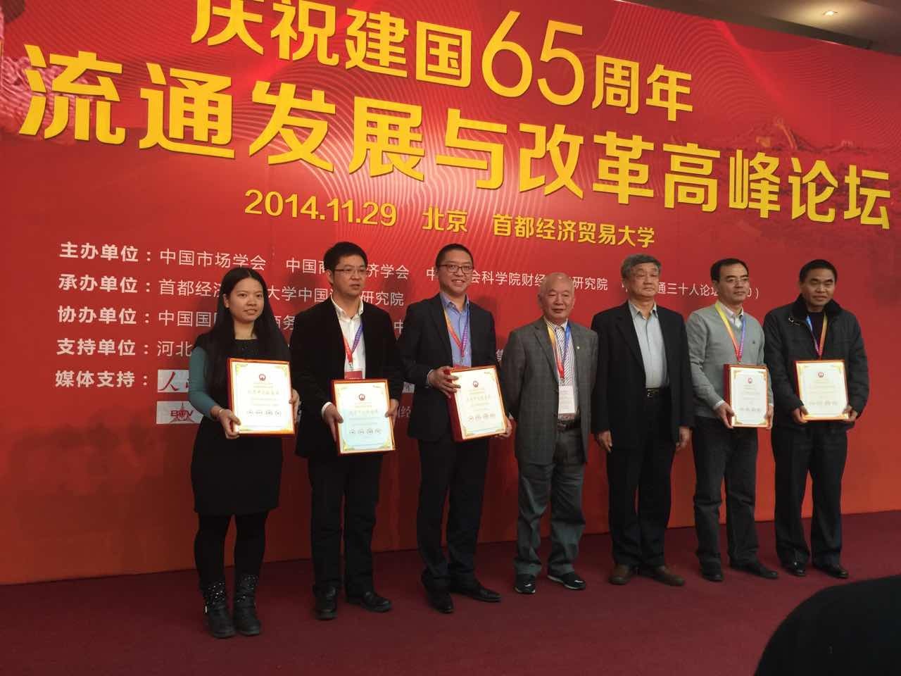 2014年11月29日,由中国市场学会、中国商业经济学会、中国社会科学院财经战略研究院、中国流通三十人论坛(G30)联合主办,首都经济贸易大学中国流通研究院承办的 “庆祝建国65周年中国流通发展与改革高峰论坛”在北京召开。商务部、北京市政府有关领导,全国流通领域有关高校、协会、研究机构、企业共300多人参加。中国流通三十人论坛(G30)成员、广东财经大学流通经济研究所所长王先庆,首席研究员徐印州、兼职研究员林至颖出席会议。