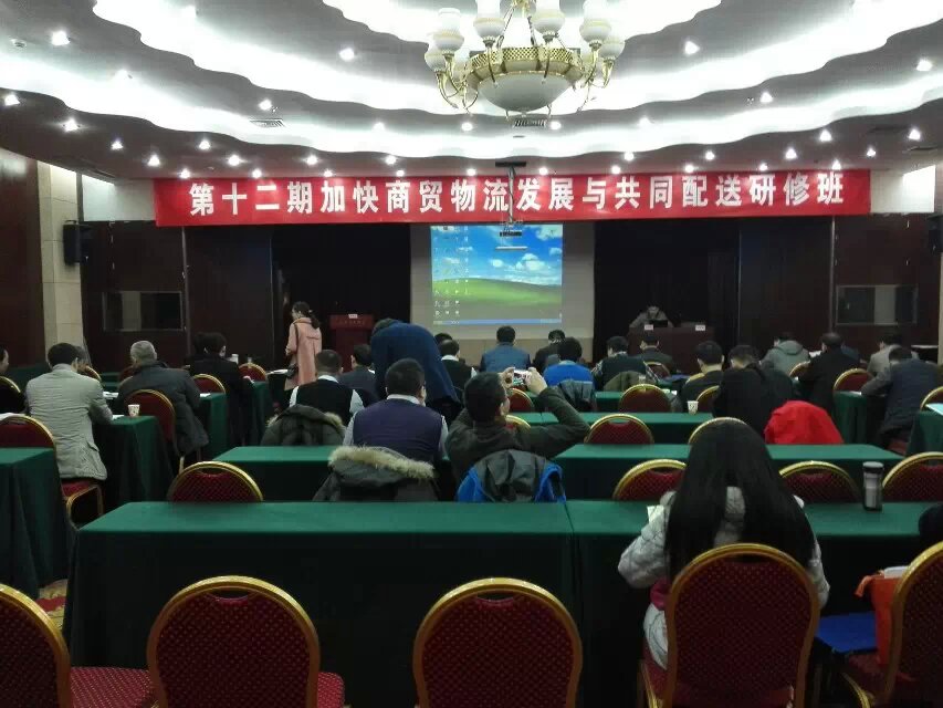 2015年1月24日,商务部培训中心主办的“第十二期加快商贸物流发展与共同配送研修班”在北京举行,广东财经大学流通经济研究所所长王先庆应邀主讲第一个专题,即“电子商务新常态下现代商贸物流企业发展模式与路径选择”。来自全国各地的100多位政府主管部门领导和企业代表参加了此次培训。