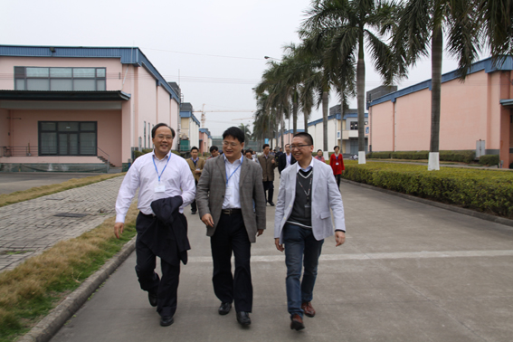 广百集团副总经理潘建国、广东省商业经济学会会长王先庆、香港利丰集团华南区总经理林至颖一起参观利丰华南总部