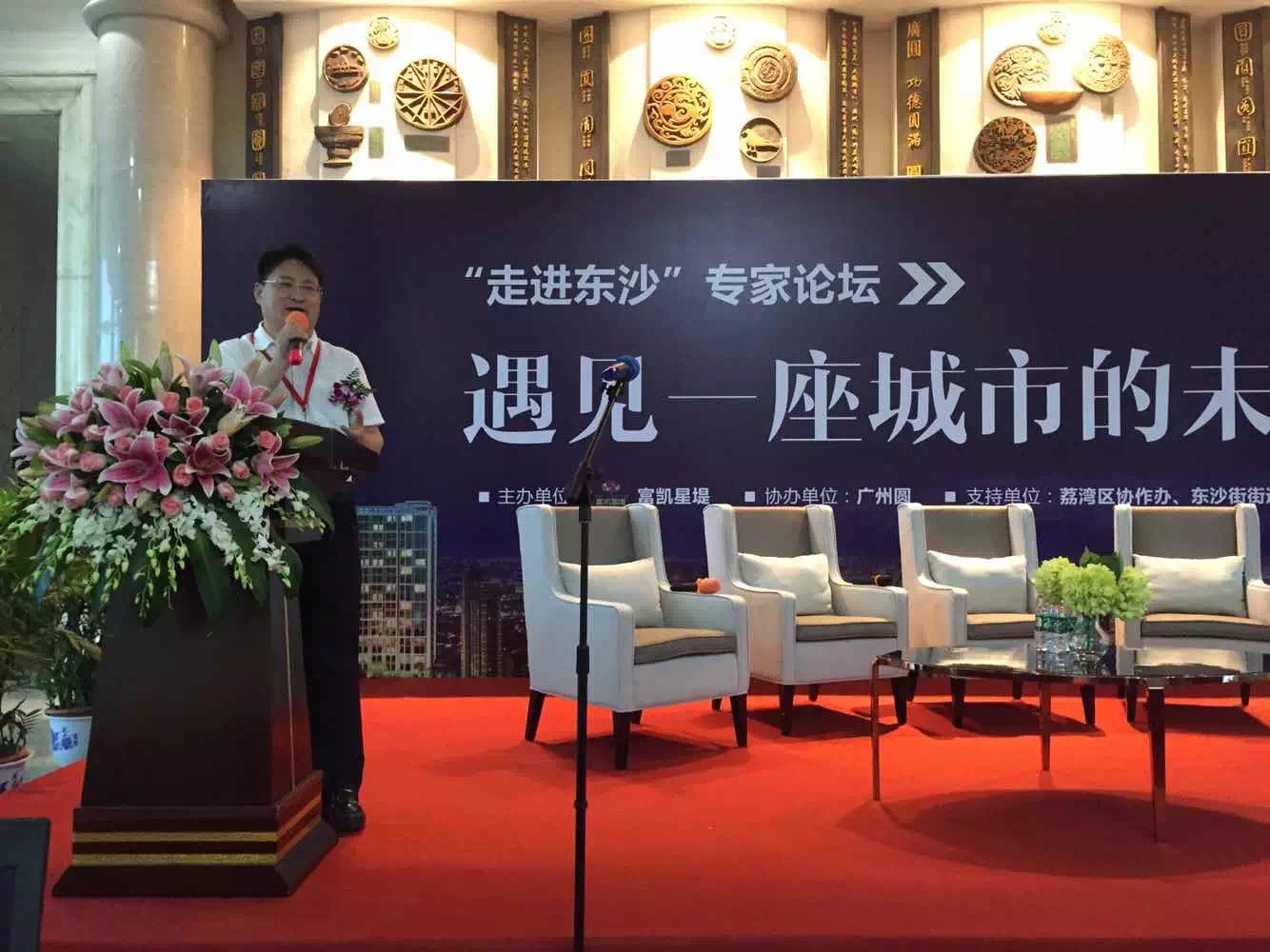 7月18日下午,由荔湾区科工商信局以及东沙街街道发起,富凯地产主办,广州圆大厦协办的“遇见一座城市的未来 走进东沙专家论坛主题活动” 在广州圆大厦隆重举行。东沙片区知名企业广东塑料交易所、医药港、广州市晟龙电子科技有限公司(3D打印)和广州七乐康药业连锁有限公司等企业代表和广州日报、羊城晚报、新浪乐居等重要媒体与会。论坛特邀商务部全国内贸领域专家、广东省商业经济学会会长、广东财经大学流通经济研究所所长王先庆教授出席并作专题演讲。在对话环节,王先庆同中国城市规划学会委员、暨南大学管理学院教授胡刚,房地产资深专家中地行副总经理郑隽宸,广州商业研究中心总监、商业咨询专家林景睿,共同解构片区发展的前景,为区域未来发展出谋划策。
