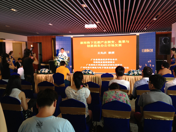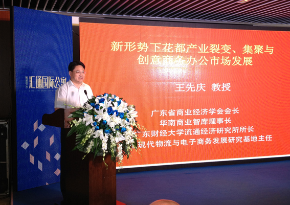 2015年9月6日下午,“十五年一寓”――雅居乐汇通广场新品发布会在汇通国际写字楼十楼隆重举行,广东财经大学流通经济研究所所长、商业运营研究专家王先庆教授应邀出席并作“新形势下花都产业裂变、集聚与创意商务办公市场发展”主题报告。随后还进行了对话交流环节,发布会现场座无虚席,人气火爆。