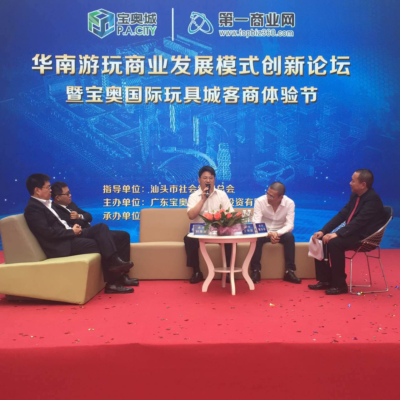 11月10日,由宝奥城主办、第一商业网承办、汕头市社会组织总会指导举办的“第十八届中国澄海国际玩具礼品博览会易址新闻发布会暨华南游玩商业发展模式创新论坛”在汕头宝奥城隆重举行,来自汕头政府及省市级相关行业协会领导、国内外知名连锁餐饮及大型儿童游乐企业代表、商业领域行业专家、权威学者、玩具行业领军企业、玩具礼品采购团代表等近千名嘉宾共同参与了这场游乐盛宴。广东财经大学流通经济研究所所长王先庆应邀出席论坛嘉宾,并见证宝奥城与其它海内外合作者的签约仪式。