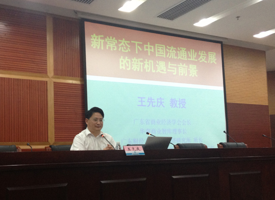 2015年11月24日,由广东财经大学科研处主办的“善水大讲坛” 之“社会聚焦”系列讲座在三水图书馆学术报告厅举行,报告会由广东财经大学流通经济研究所所长、广东省商业经济学会会长王先庆教授主讲,主讲主题是:新常态下中国流通业发展的新机遇与前景。三水校区300多名学生聆听了报告并积极提问发言。