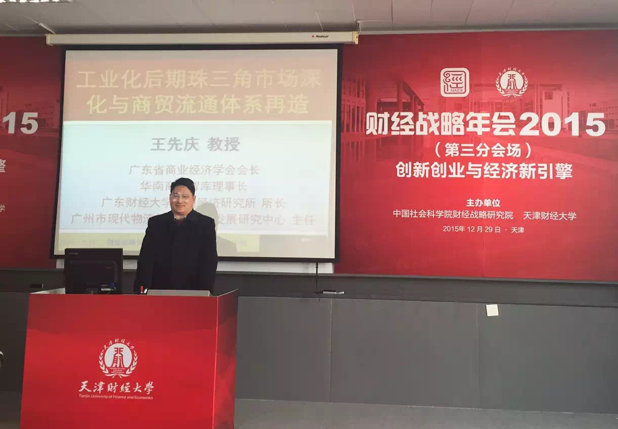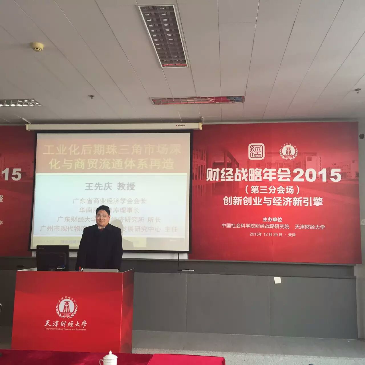 开幕式由中国社会科学院学部委员、财经战略研究院院长高培勇教授主持。天津市副市长阎庆民在会前亲切会见了参会的部分专家学者。 广东财经大学流通经济研究所所长、广东省商业经济学会会长王先庆教授应邀出席并在分论坛发表演讲,主讲的题目是“工业化后期珠三角市场深化与商贸流通体系再造”。