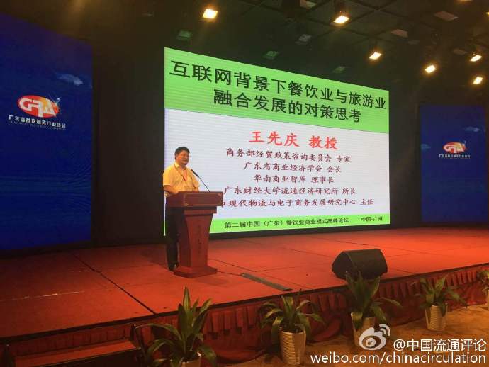 广东省商业经济学会会长、广东财经大学流通经济研究所所长王先庆教授应邀出席大会并作了题为《互联网背景下餐饮业与旅游业融合发展的对策思考》的主题演讲。王先庆教授指出,在互联网时代,电子商务作为现代商贸服务业的新兴业态,正渗透到所有的行业,尤其是与生活贴近的传统服务业精于勤,正在彻底改变着传统服务业的商业模式和经营方式。在互联网背景下,加之与新常态现象重叠,基于小农经济和小商业生存的传统餐饮业,在越来越回归餐饮消费的本质的同时,开始注入新的时代元素,带来简洁、时尚、品味、情感、体验等新的消费价值,转型为新时期的现代餐饮业。以炫富、交际、圈子等官场和商场竞技场为重要功能的传统餐饮业,具有转型时期特殊的中国文化符号的附加功能,随着温饱问题的解决以及健康主义、简约主义消费方式的潮流,以“请客”为导向的餐饮人流集聚方式正在过去,星巴克式、真功夫式、麦当劳式等消费集聚方式越来越成为主流。