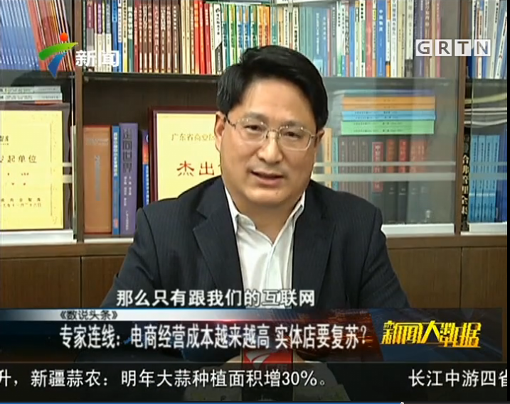 11月11日,广东电视台新闻频道《新闻大数据》栏目报道了“专家连线:电商经营成本越来越高,实体店要复苏”访谈节目。报道了广东省商业经济学会会长、广东财经大学流通经济研究所所长王先庆的专访。