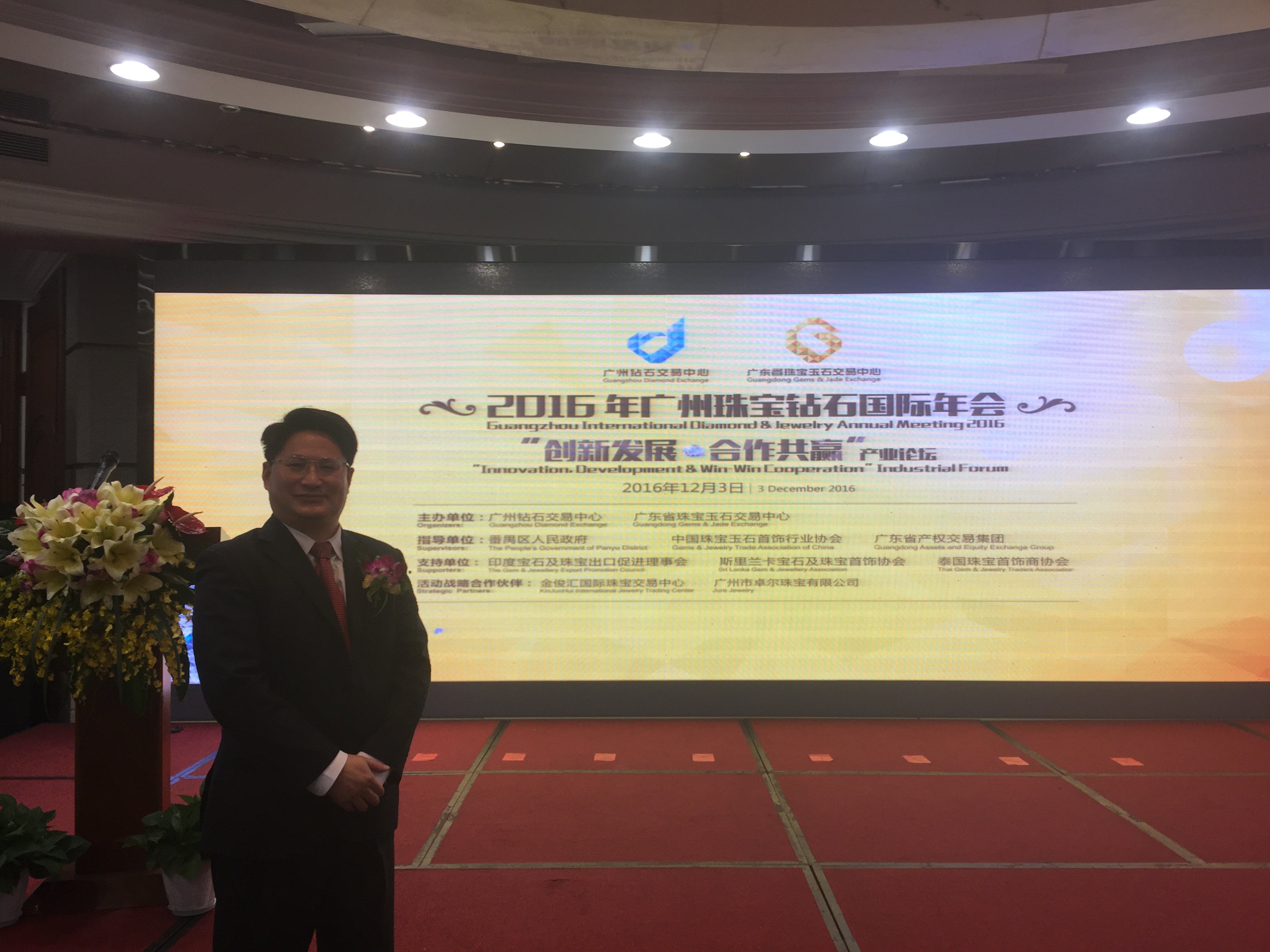 该论坛是在广东省产权交易集团、中国珠宝玉石首饰行业协会、广州市番禺区政府共同指导下,广州钻石交易中心与广东省珠宝玉石交易中心联合主办。广东省商务厅、国资委,广州市金融局、商务委、番禺区委和区政府以及广东省产权交易集团等相关单位领导出席论坛并作致词,论坛得到了印度、泰国、斯里兰卡等国际钻石、珠宝行业的大力支持,斯里兰卡宝石及珠宝首饰协会主席、泰国珠宝首饰商协会主席出席并致辞。
