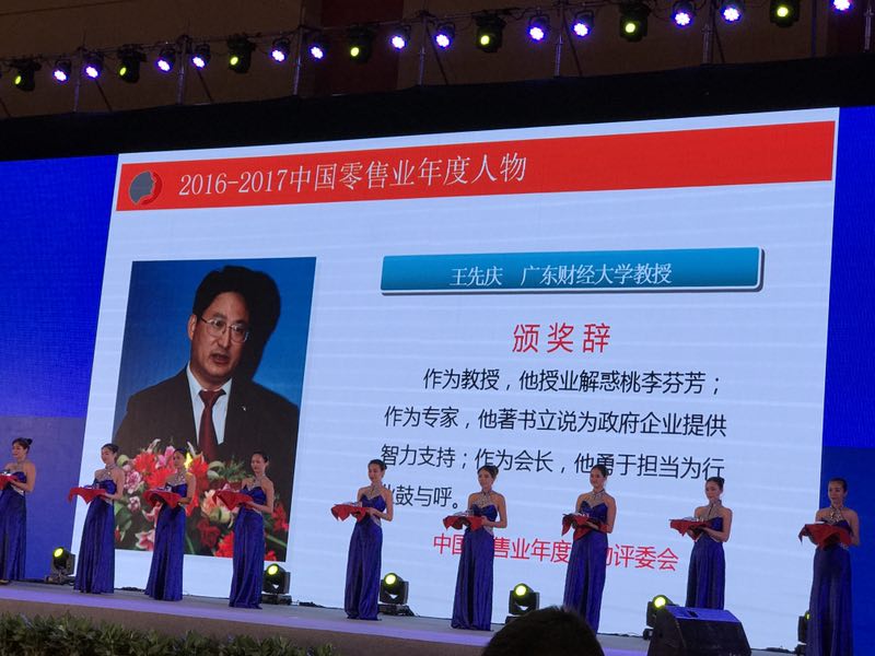 广东省商业经济学会会长、华南商业智库理事长、广东财经大学流通经济研究所所长王先庆教授被评选为“2016-2017(第十二届)中国零售业年度人物”,王先庆教授2002年开始研究零售业以来,深入研究现代零售领域的新问题、新现象,不断探求零售企业的技术进步与转型升级,为零售业的发展,尤其是华南零售业的发展,做出了卓越贡献。评委会颁奖辞写道:作为教授,他授业解惑桃李芬芳;作为专家,他著书立说为政府企业提供智力支持;作为会长,他勇于担当为行业鼓与呼。
