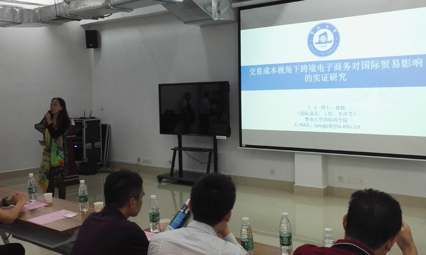 会议的重要环节是主题演讲,由广东财经大学信息学院副教授、广东省商业经济学会秘书长李曼主持,暨南大学国际商学院王玉教授的演讲主题是《交易成本视角下跨境电商对国际贸易影响的实证研究》;广东省跨境电子商务协会秘书长吴航作《跨境电商校园创业体验模式与区域经济发展》主题发言;教育部高校毕业生就业协会校企合作委员会副秘书长李晓帆先生与我们分享《跨界合作、校企融合促进跨境电商应用型人才培养》的经验;广州市德镱信息技术有限公司总经理殷学祖先生为我们解析《跨境电子商务与创新创业生态体系构建》。