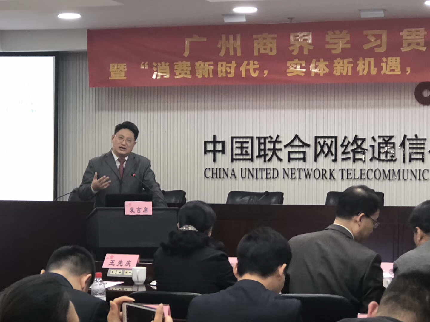 11月23日,由广州商业总会联合中国联通广东省公司举办“广州商界学习贯彻十九大精神大会暨消费新时代,实体新机遇,政务信息化,助力新发展”主题活动在广州联通大厦举行。会议邀请了广东省商业经济学会会长、广东财经大学商贸流通研究院院长王先庆教授进行专题讲座。