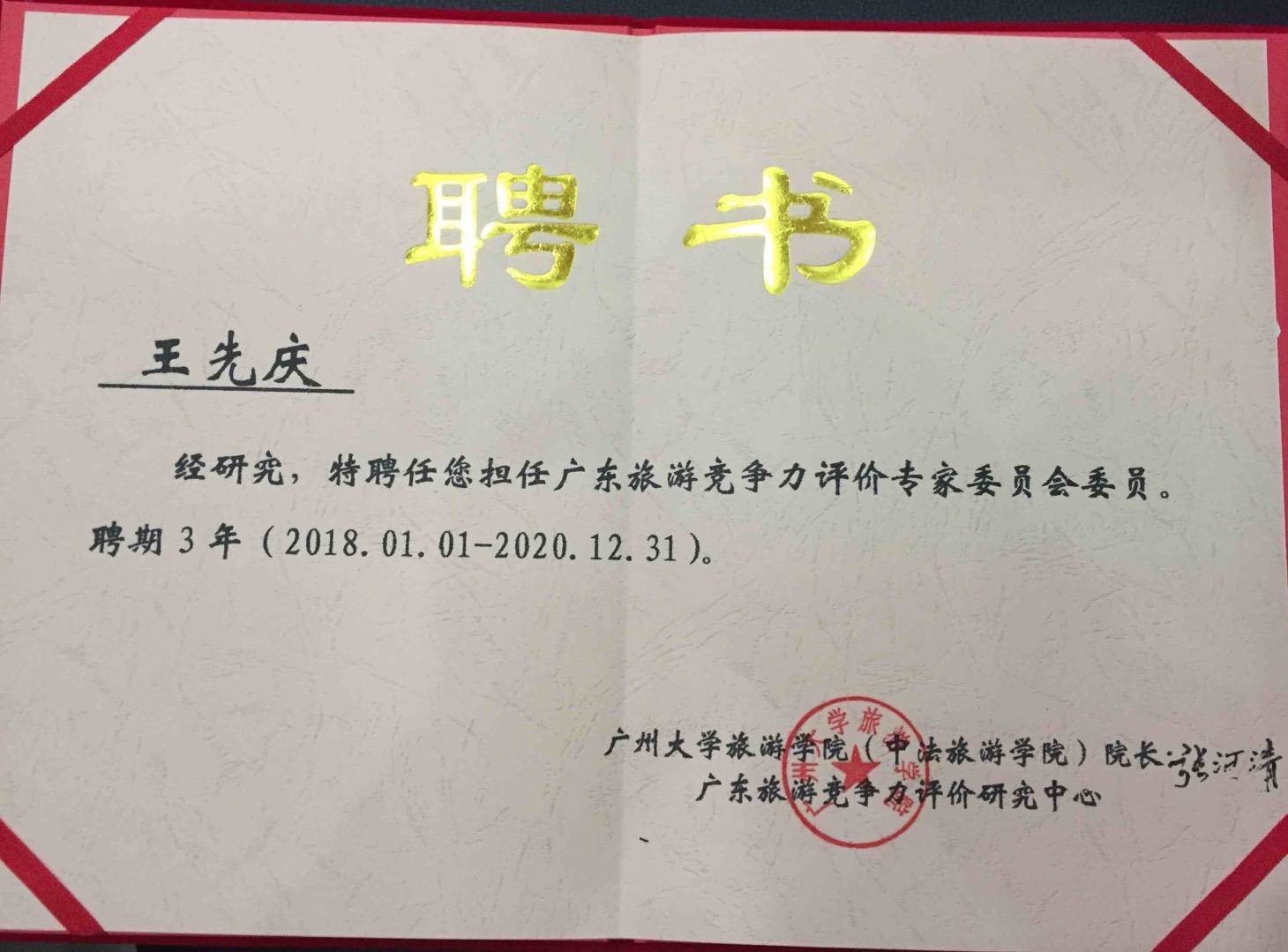 王先庆再次获聘广东旅游竞争力评价研究中心专家委委员