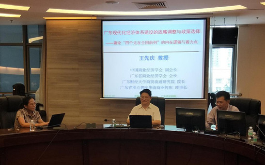 2018年9月27日,由广东省社会科学院科研处、人事处、青年学术沙龙主办的继续教育专题活动在广东社会科学中心举行,广东财经大学商贸流通研究院院长王先庆教授应邀做题为“广东现代经济体系建设的战略调整与政策选择——兼论‘四个走在全国前列’的内在逻辑与着力点分析”的学术演讲,副院长赵细康、企业研究所副所长李源出席活动。院内外专家学者40余人参加本次学术交流。